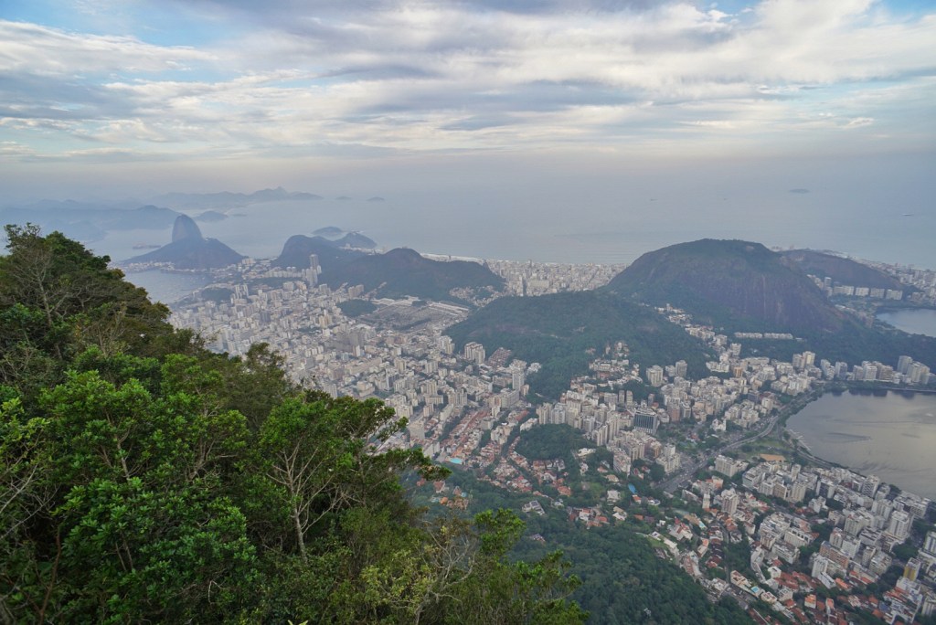 We had entered the other one into Uber. I noticed a sign for a train to Corcovado (the right one) and we spent the next 2 km trying to tell the driver to stop. We said, “Excuse me!,” “Stop!,” and at one point I was gesturing to the piece of paper/ticket that showed the station name. None of this had any effect. It’s like he was completely oblivious. “Great, we’re being kidnapped,” I said out loud. Eventually Nicole looked up the Portuguese word for “stop.” “PARE!,” she exclaimed and he finally responded. I realize that there is a language issue, but I would have thought gesturing while saying fairly common English words like, “Stop” or “Excuse me” would have gotten through faster. Luckily we weren’t kidnapped in the end, or at least only briefly. We got to the station in time to get our tickets and board the 4:00 cog train to the summit.