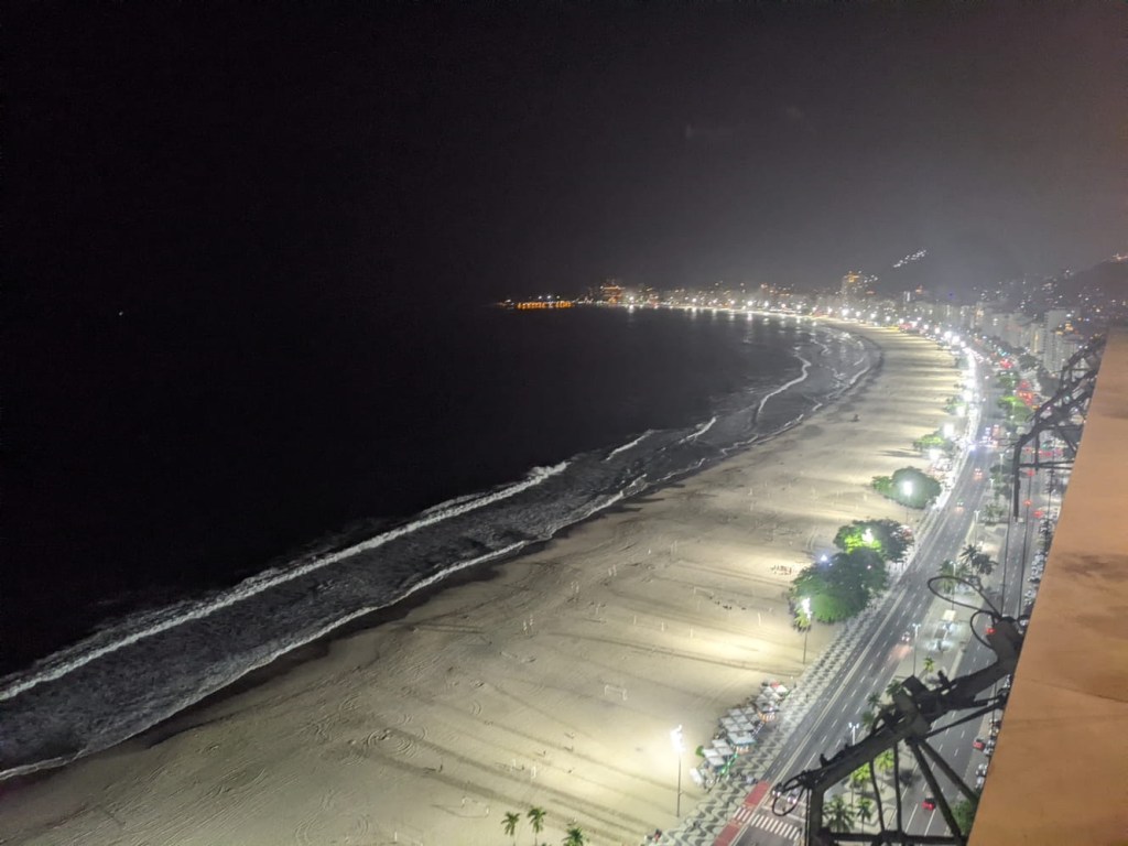 We had a late dinner (or early if you’re Brazilian) on the rooftop. We each had a pizza which I chased with a rich Brazilian dessert called Brigadeiro. All in all, Rio was more pleasant than either of us expected despite all the traffic and craziness. Tomorrow we head out, and not on a redeye! The non-redeye options are quite limited, and it will be a long day, but hopefully this is better for our body clocks. Tchau.