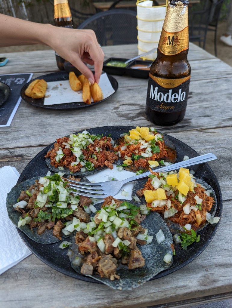 After a lunch that consisted merely of a single airline Biscoff cookie, we were eager to get some dinner. Our host recommended a nearby taco hut that was simply called, “5 Tacos and a Beer.” Their offerings were as expected. I ordered 5 tacos – 2 carne asada, 2 adobado, and 1 longaniza (a type of sausage). We washed down our tacos with a Modelo Negra.