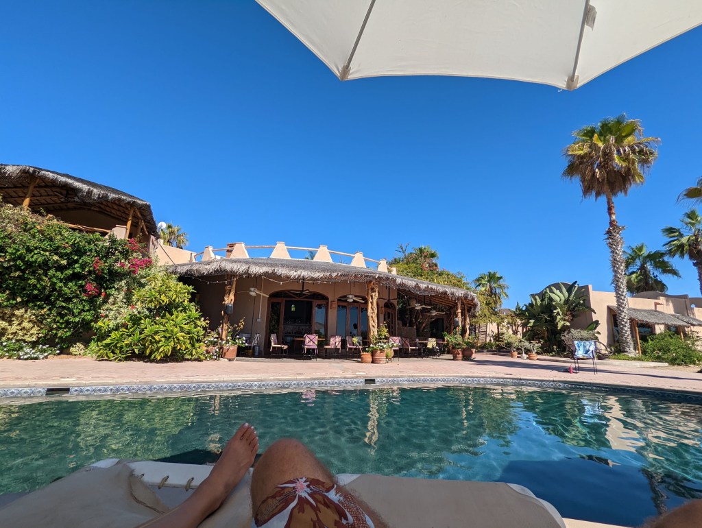 We returned to our casita to relax by the pool for a spell. I feel like we were busy today, and yet didn’t seem to actually do anything. It’s fascinating, really. The mosquitoes really started attacking me after about an hour or so. That is something I hadn’t expected by coming to this desert climate on the coast. I wouldn’t have thought there was enough standing water to support their lives, but I have about twenty bites on my ankles and feet to prove otherwise. We had intended to go back to Five Tacos and a Beer for dinner. It has predictably reliable offerings, but they were closed! What is this madness?!