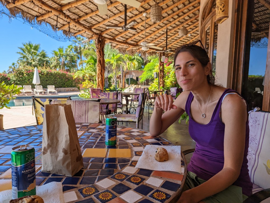It was about 1:30pm when we left the beach. We made our way to Taller 17 in the town of Todos Santos to pick up some muffins, scones, and cookies. We brought them back to our casita to enjoy them outside as a late lunch. We then spent the rest of the afternoon in recovery by the pool. Our bodies were not capable of doing much else.