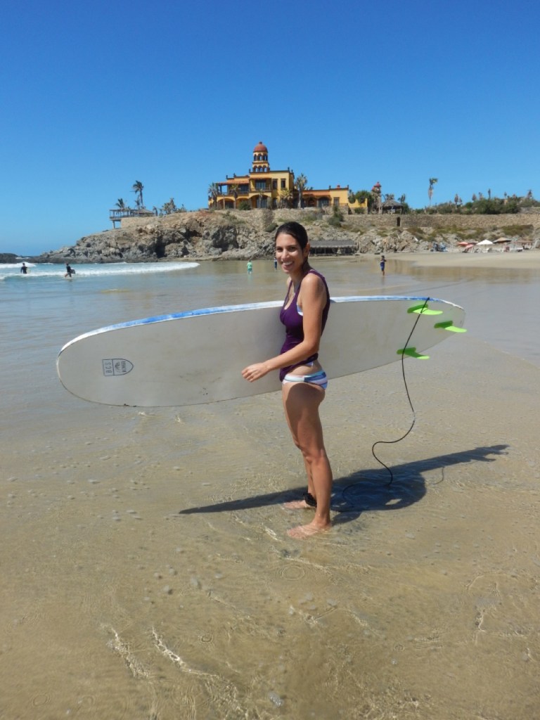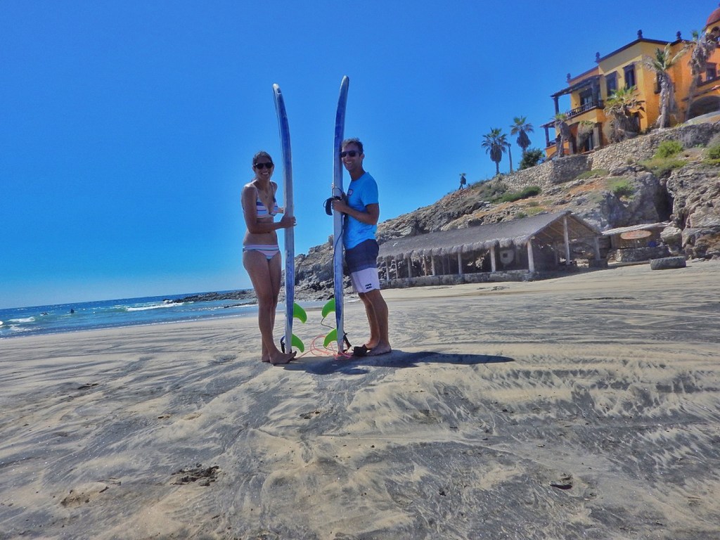 The sun woke us up again and we had the included breakfast outside. Nicole had a waffle and I had huevos rancheros, which came presented in a way that seemed more American than Mexican. In any event, today is our wedding anniversary. I haven’t surfed since 2006, and Nicole since 2008, so it seems as good a time as any to give it a go.