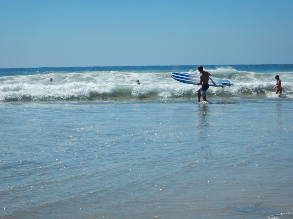 We started rotating out and taking breaks due to the aforementioned hard work necessary to keep fighting the waves, digging in, bracing for impact, getting dragged along the sand etc. It was a rather intense workout. My chest got rubbed raw, as I didn’t have a rash guard, and we had sand adhering to us in all areas. Our arms felt like jelly and after a couple hours, catching waves began to have diminishing returns from the fatigue.