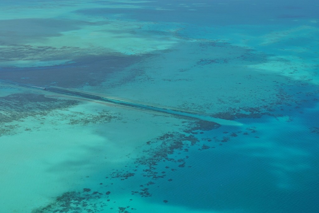 From the Milky Way, we continued on to an area called “Clam City.” Unsurprisingly, it contained numerous giant clams in a small area. There wasn’t really anything else to see beyond the clams, so we were only there for a few minutes. From there, we ventured on to an area called the German channel. It’s a trench-like straightaway cutting through the coral reef. The Germans used dynamite to blow apart this area to allow their ships to pass between the lagoon and the rest of the Pacific Ocean when Palau was a German colony. It’s now a popular diving spot, but we were just using it to transit. From surface level, you don’t really grasp the size of the project, so I’m showing a picture from the plane yesterday as well.