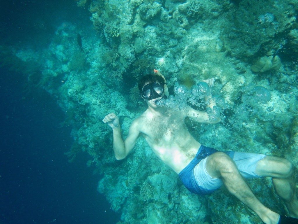 It is a big dive spot, but I actually don’t see what the fuss is about because I actually think the best stuff was closer to the surface. If it wasn’t already clear, our guide was big on taking our pictures, especially mine for some reason. I guess he figured I was a good swimmer and told me to dive down and turn around and pose for a picture. As you look at it, note that I was not actually as close to the coral as it appears, and secondly I was giving the shakas, not flexing, but it was captured at the wrong moment.