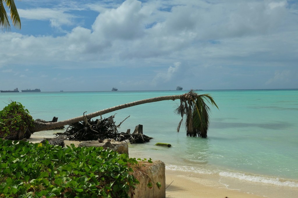 Now I wasn’t expecting Saipan to be ugly by any means, but it exceeded my expectations. The colors of the water and surrounding vegetation is quite vibrant and beautiful. We made a short loop back to the Crowne Plaza, where the back side faces a gorgeous beach and the front side looks like a has-been hotel in Daytona Beach. It has (and is) undergoing various upgrades and what has been renovated contrasts greatly with what . . .hasn’t.