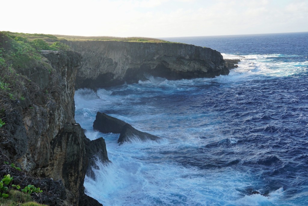 After spending some time relaxing outside, we drove up the coast to the extreme northern part of the island. During the waning stages of the Battle for Saipan during World War Two, American forces had pushed the Japanese defenders up against the sea to the north. Cut off from resupply, the Japanese outlook was grim. However, rather than surrender to the advancing Americans, the majority of the Japanese chose to commit suicide by jumping off the nearby cliffs. The first we stopped off at was called “Banzai Cliff,” and we could see the cliffs plunge into very violent seas and rocks below.