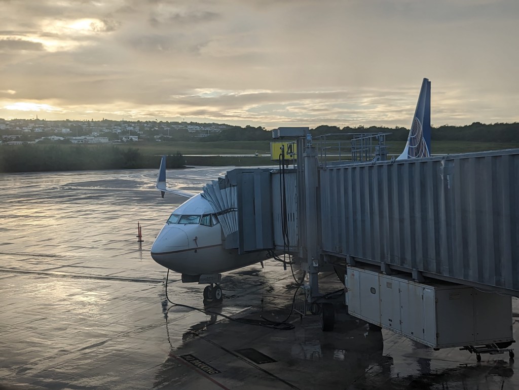 In any event, we were checking in for our flight to Guam when guess who makes an appearance? That’s right — freakin’ Brad. We tried to avoid eye contact and retreated behind our surgical masks. He had talked a big game the other day on how he was going to get business class all the way to Hawai’i. Spoiler alert: he didn’t. Everywhere we went, he was cutting across our path like a psychopath who felt the need to “win” at getting to things first. Nicole got some good sleep on the less than two hour flight. I did a bit of head bobbing myself. We arrived in Guam at 430am. How does that flight time help anyone? We groggily exited the plane and went through customs. Brad cut us off at global entry. We cut him off at the actual customs desk because he attempted to make up his own line. Take that, Brad. Hopefully that is our last encounter with Brad.