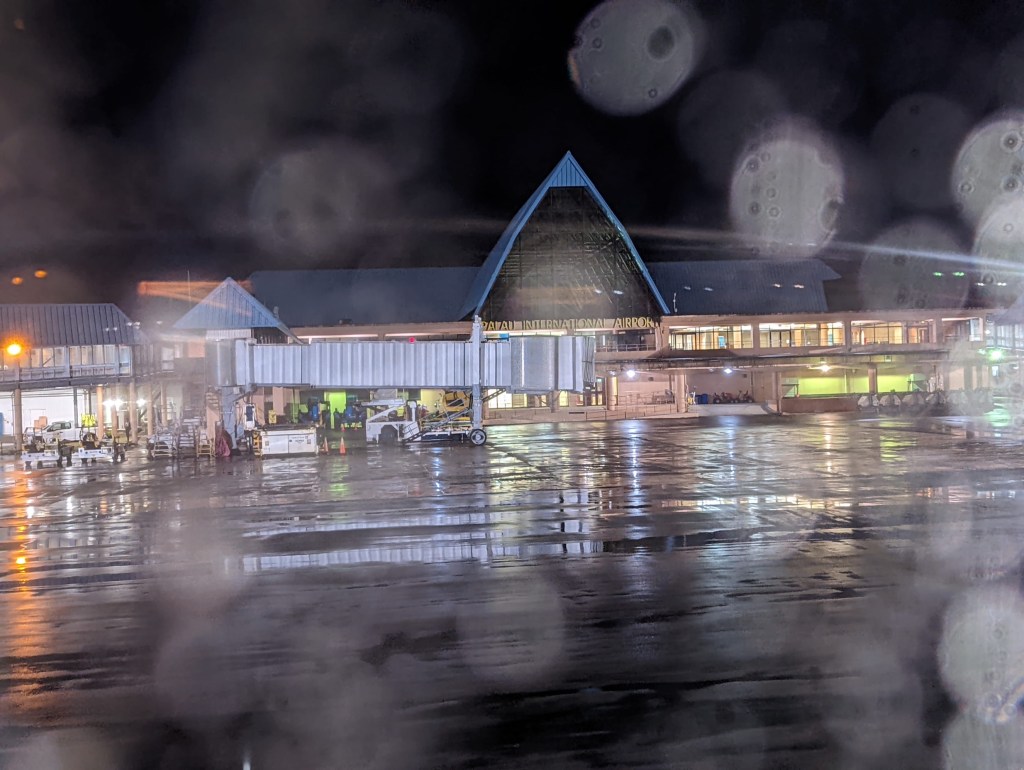 Our day began where it ended — in the Carolines Resort. We were fortunately able to find a gas station that was open near midnight. Things are often closed here you see. It was about a thirty minute drive to the airport from the Carolines. We were able to drop the car off “after hours,” using a key drop. I presume it’s always after hours here, however. Furthermore, I saw a charge on my account that was for a hardware store. I was prepared to flag it to Chase, but then saw it was for the exact same amount as the rental car. I don’t fully understand how business is done here.
