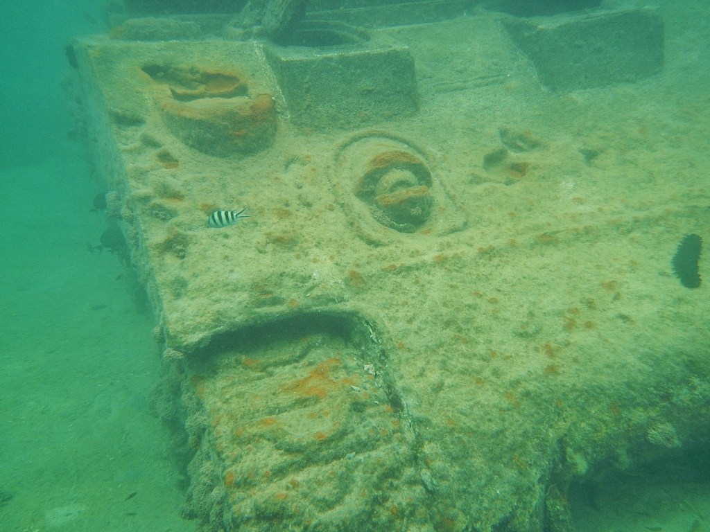 Nicole led us on a 5-minute swimming journey to tank two. The top hatch is stuck open indicating that the crew attempted to make a swim for it. It would have been a challenge even in the relatively shallow water for a tank crew with gear to make it to the shore with any speed. It would have taken them at least 10 minutes from tank two, and probably 30+ minutes from the first one. The fates of the specific crews is unknown, but I am very curious as to how it played out for them.