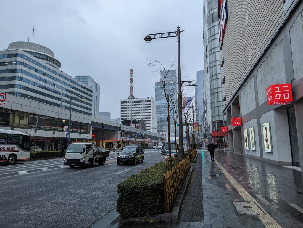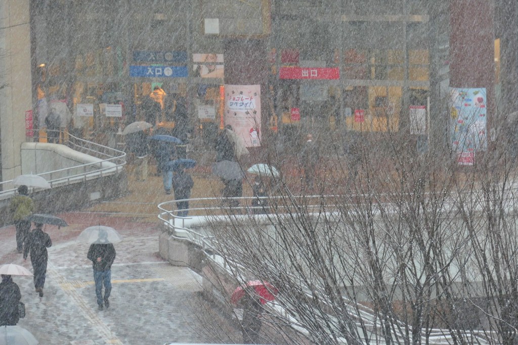We went to bed last night slightly concerned about the weather forecast for the next day. It was going to be a wintry mix of sleet and snow. The trains had already projected the possibility of delays — something that Japan’s to-the-minute rail efficiency does not take lightly. We woke up with the forecast transpiring. We checked out of the Tokyustay and emptied onto Ginza’s streets with the snow falling somewhat painfully in our faces.
