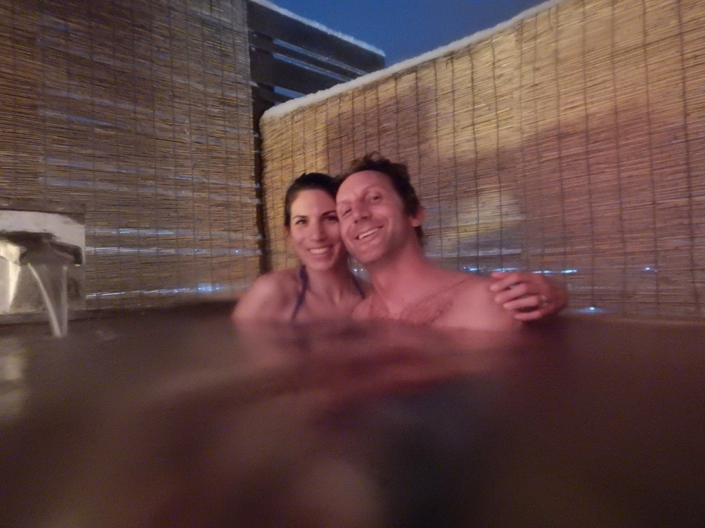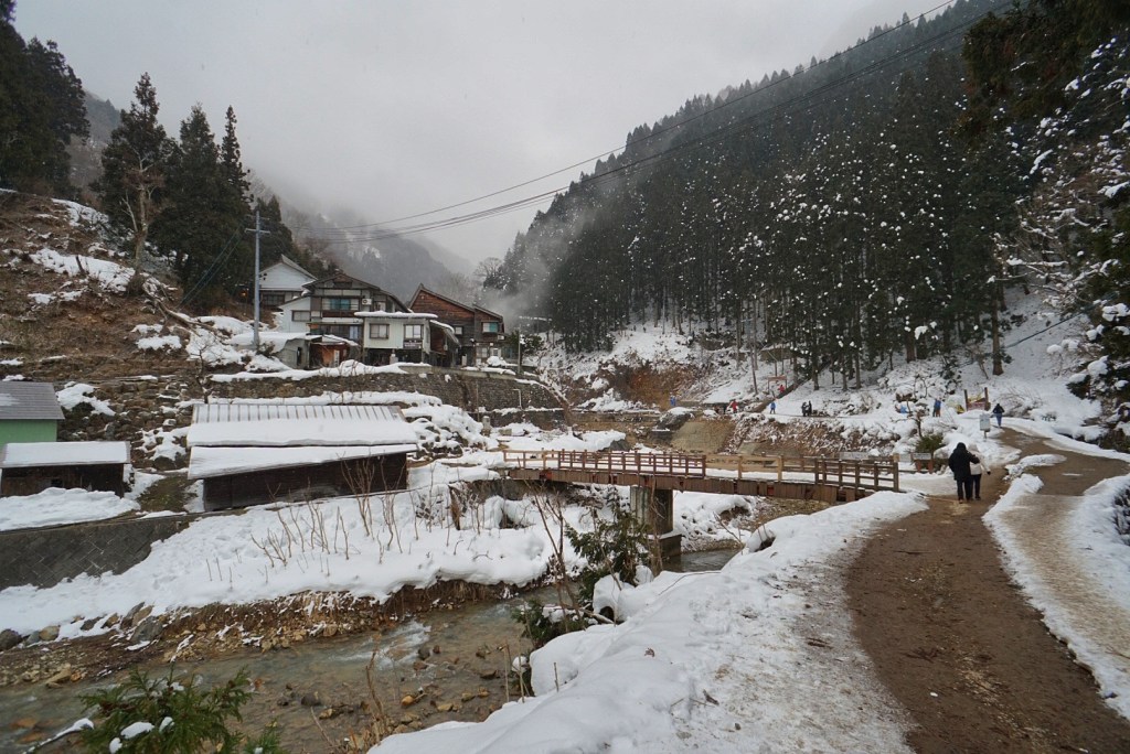 Despite the elements dumping down upon us during our walk, it was nice to take in the beautiful scenery around us. It was like the Japanese version of a Dickens village. Around the time the bus would have departed, we were settling in to our ryokan. We initially had an issue with the heat, which was unfortunate because it was quite cold in our room. I thought it was because I couldn’t understand the remote control, but it seems the unit was having a few glitches. They were extremely apologetic about the situation and offered us a private onsen for an hour for free. It was an unnecessary, but very kind gesture which is consistent with normal Japanese hospitality.
