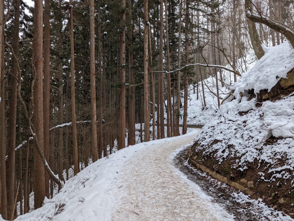 As we exited the park, I took a look at the bus schedule and the next one wouldn’t depart for another 45 minutes. Google suggested we just walk back to the ryokan (estimated time of 39 minutes). We listened to google, and luckily it was mostly downhill. The snow was coming down even heavier now. My mask was saturated with a combination of melted snow and my own snot. Hot.