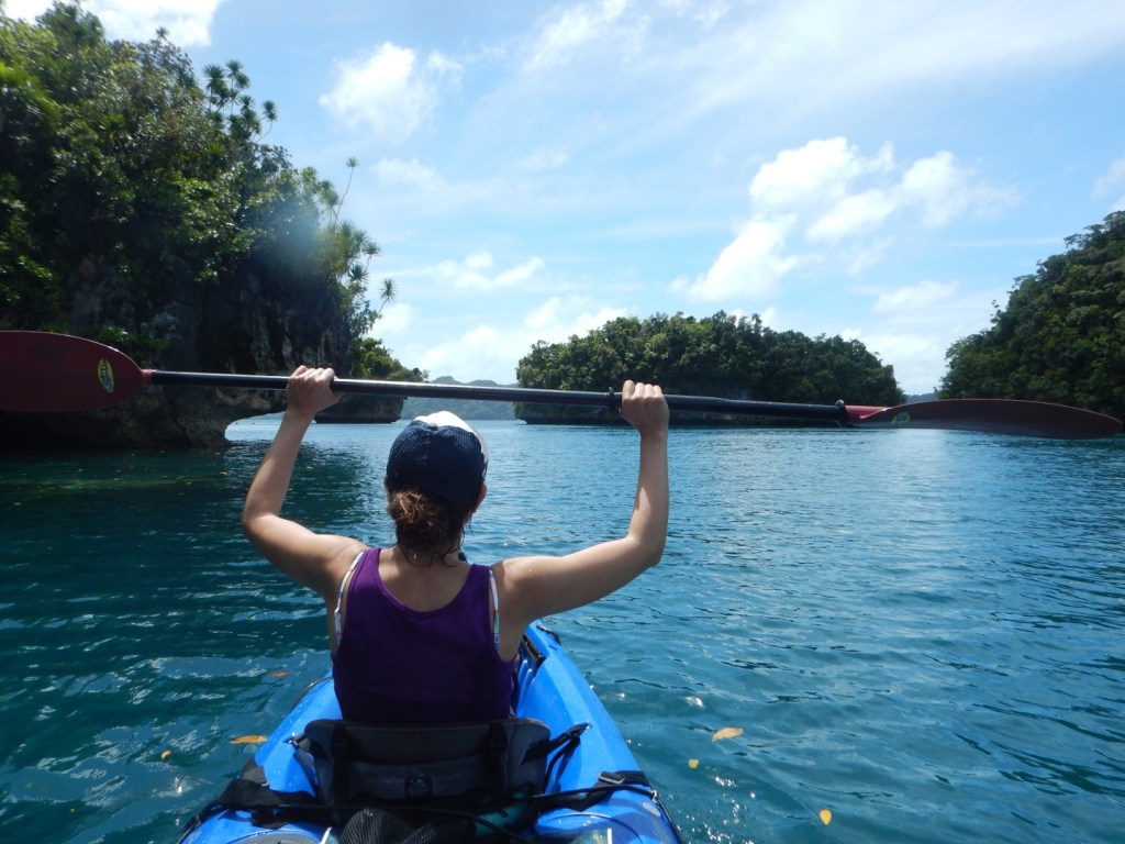 While we struggled to schedule things on Palau like a rental car, a boat tour, or a sightseeing flight, we did eventually solve these puzzles. Palau is very outdoor-centric, and is therefore highly weather dependent. The weather was perfect for our sightseeing flight — after being overcast all morning. Our boat trip was also almost entirely sunny with only a spritz of rain on our way back. And as much as I kvetched about Brad in this blog, I actually think he’s the only reason we went swimming with the sharks, one of my highlights of the trip. He complained at one point that he wanted to do more swimming, and I honestly think the guide was trolling him by taking us to a spot that Brad was a bit hesitant to swim in. Nowhere on TripAdvisor, does anyone mention swimming with the sharks with that tour group. So thanks, Brad, for being really annoying. Then while filling out paperwork to rent kayaks, it was a downpour. We walked out to the boat and it was sunny. After returning the boat and getting in the car, it began to downpour again. What were the odds?