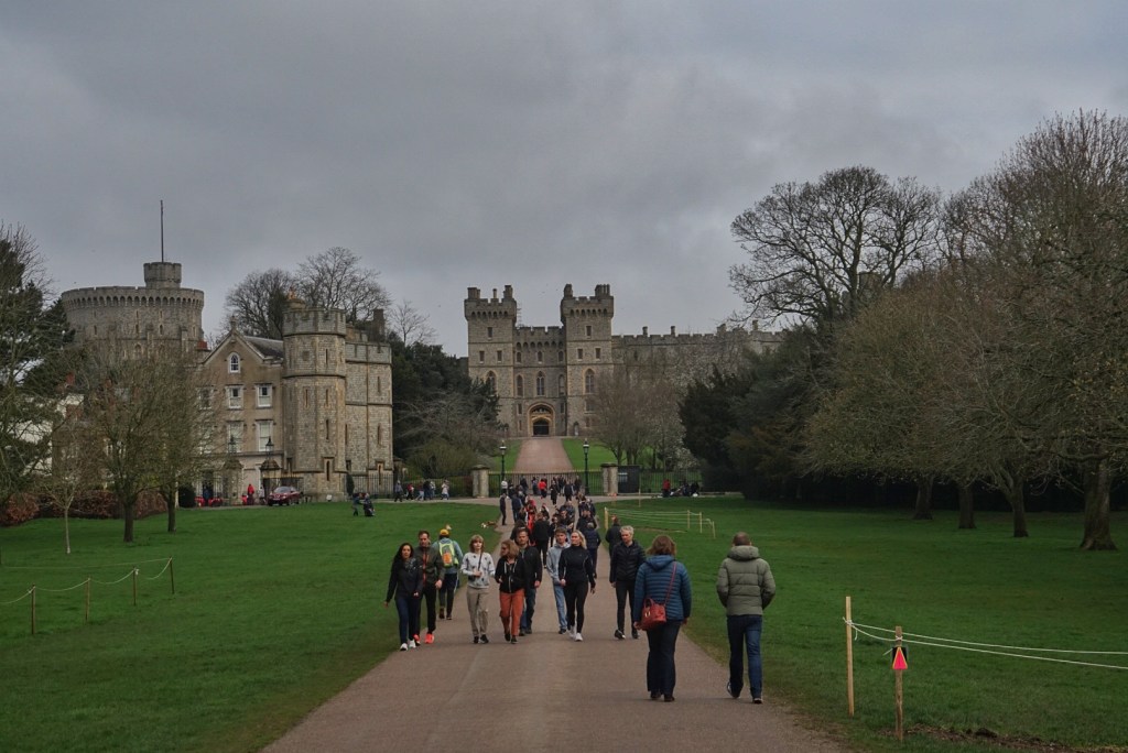After parking just across the river by Eton (the stuffy alma mater of numerous politicians, royalty etc.), we grabbed a quick breakfast of pastries and teas at a local coffee shop before going for a stroll about the neighborhood. Windsor Castle was not hard to find as it is the most prominent landmark in the area. We were a bit confused by the large crowds and police presence outside. Even locals were a bit perplexed and inquired with the bobbies. They replied that the changing of the guard was going to take place. I didn’t realize that the changing of the guard at Windsor Castle was even a thing. Apparently it only happens every few days. We didn’t loiter for this spectacle, and walked around the neighborhood instead. We found our way to a pathway called “The Long Walk.” It is a descriptive title. There was some sort of lackluster walking race going on at the same time that seemed to partially be using “The Long Walk” for some kind of long walk.