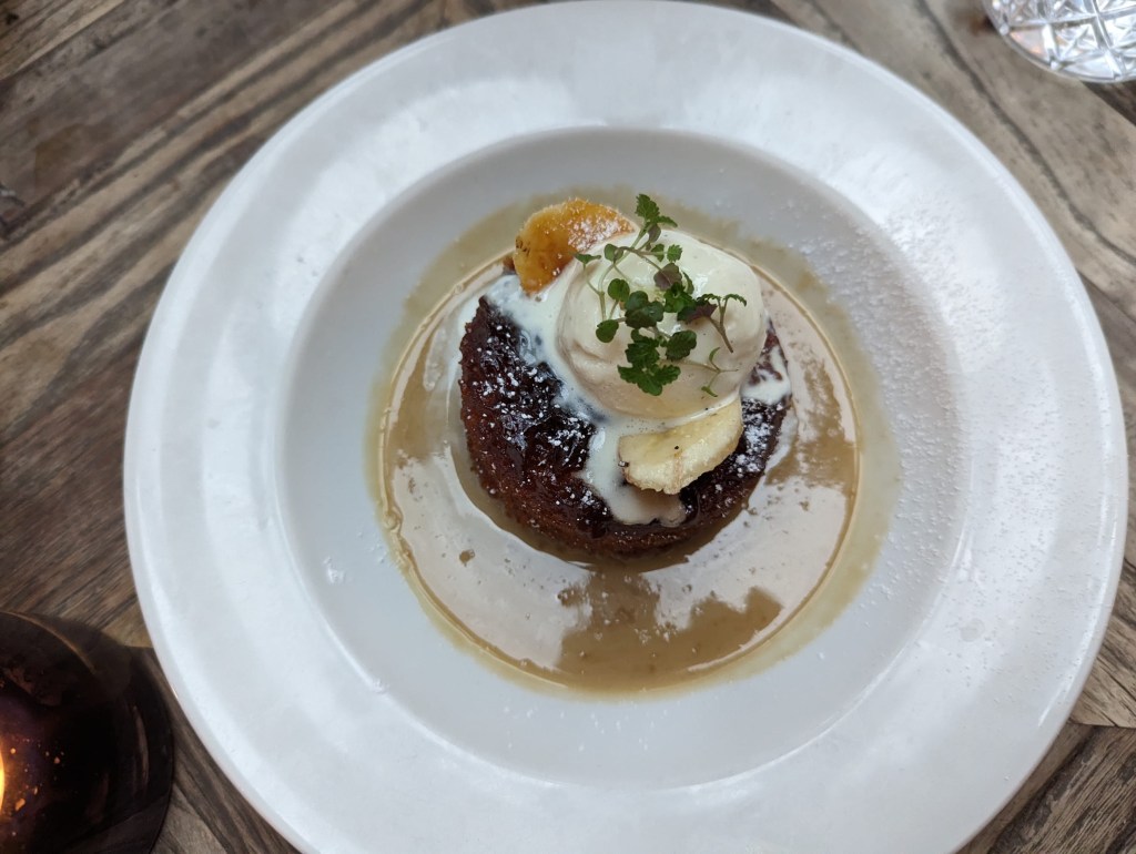 We returned to the Frogmill Inn to warm ourselves and grab dinner. I had fish and chips. Nicole had a wagyu burger. England’s food scene is not that varied. Of all the restaurants/pubs we looked at going to, the menus are pretty much exactly the same with the exception of some seemingly random foreign food item that seems more of a mistake. A typical menu might be — Roasted chicken, fish pie, chicken and mushroom pie, fish and chips, pub burger, Moroccan chicken tagine… Wait what? We finished off our dinner with a sticky toffee pudding. The commonwealth uses the term “pudding” very loosely. Though perhaps it could also be argued that Americans definition of “pudding” is too narrow.