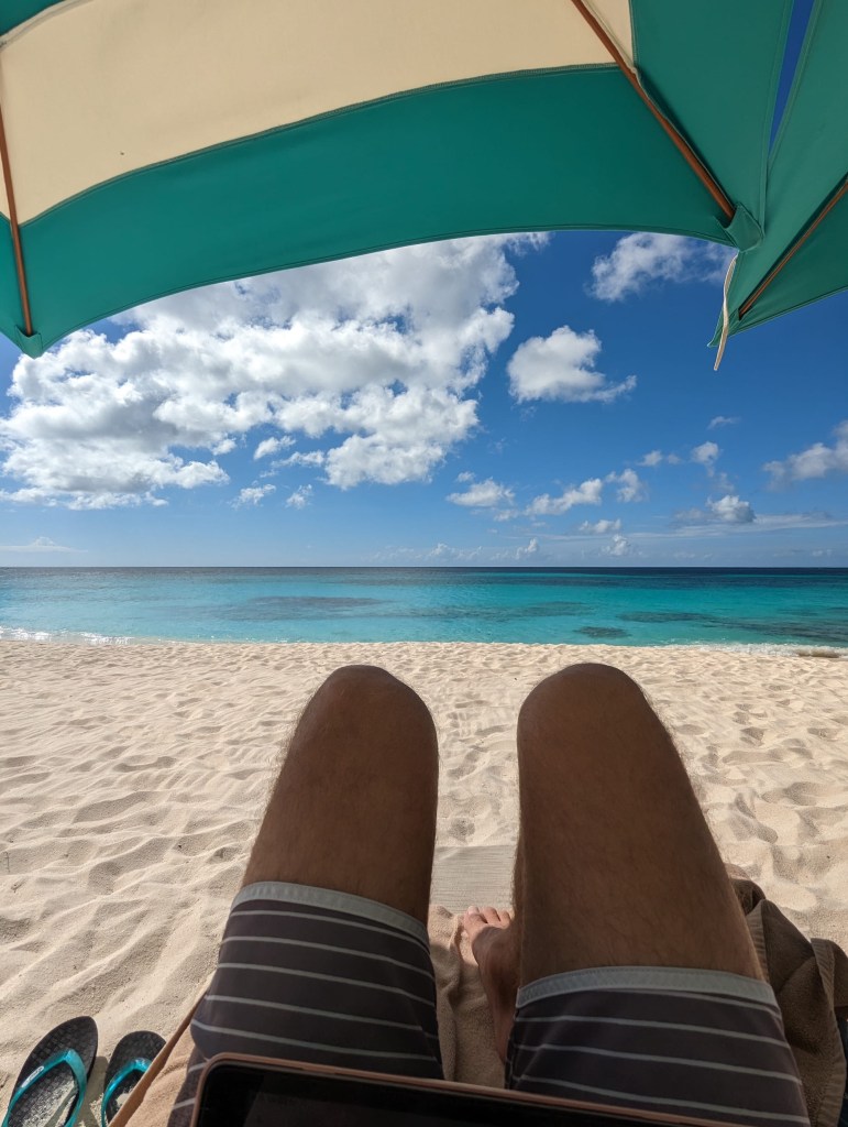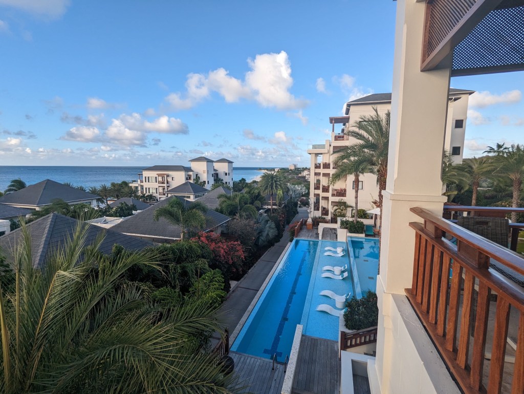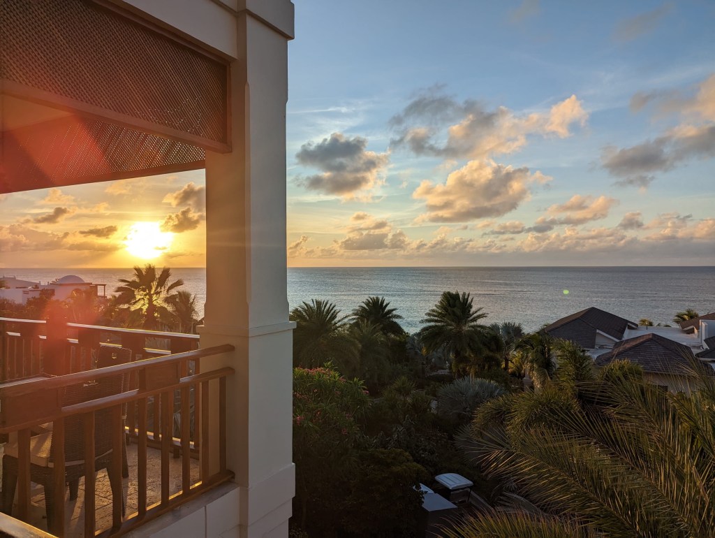 Our room is quite large and we have a balcony that is large enough to have two loungers and a separate table and chairs. It is very quiet here despite its appearance as a large resort. It has a 75 room capacity, but I think most are vacant. It makes sense since there is only one regularly scheduled commercial flight per day on a 76 seat Embraer 175. I enjoy quiet. We have yet to really explore much outside the hotel, but so far Anguilla has had a nice calming effect.