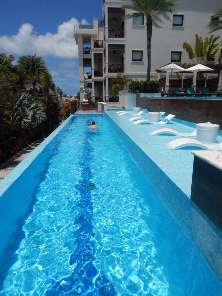 After our walk, we sat by one of the two pools that the LXR has. It is an adults-only pool, which is peculiar because the other more “family-oriented” pool is much closer to the bar. Either way, we were the only people there. We read books, I went for a swim in the lap pool, before we sat in some partially-submerged loungers.