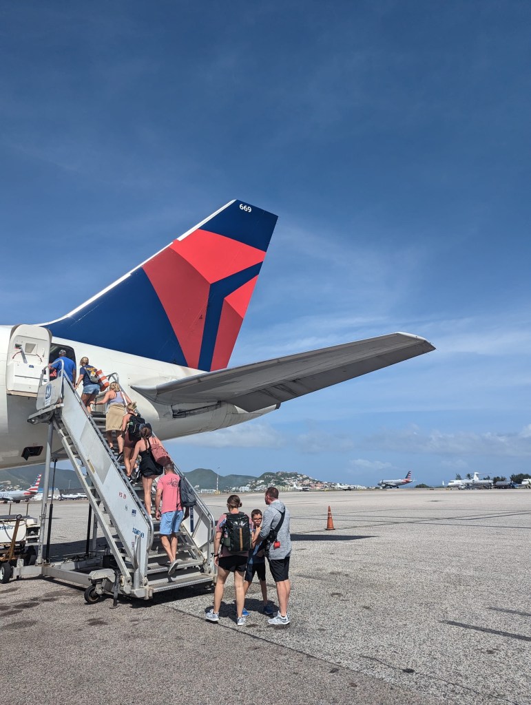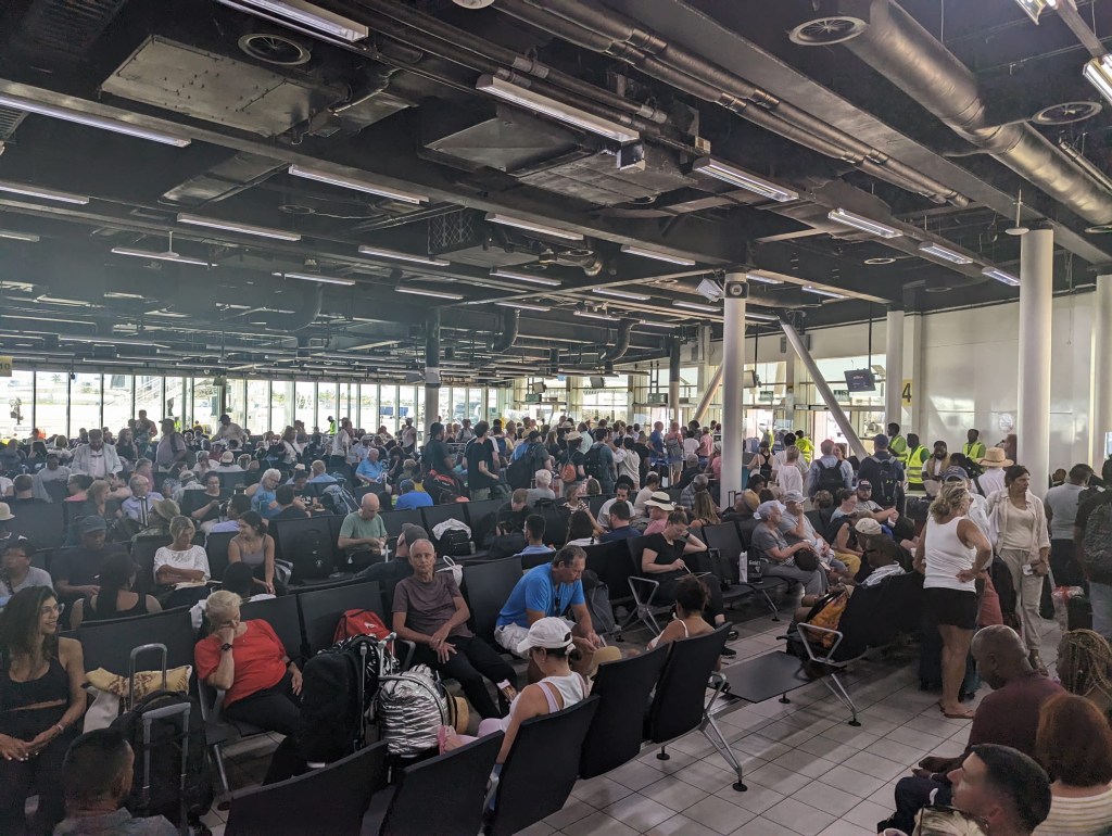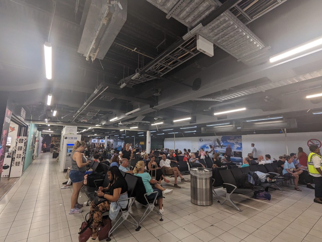 Once through security, we emptied into a terminal building that has somehow become more constricted and chaotic than it was in 2019. People were everywhere. Two small bathrooms were meant to somehow accommodate the thousand or so people in the terminal for 6 U.S.-bound flights that inexplicably all leave at the same time. Conditions were actually kind of inhumane. Nicole and I attempted to find a spot out of the way — of which there were few. They had all this time to get construction sped up during the pandemic and there is no visible progress in any area. In comparison, LAX somehow managed to build a new satellite international terminal, a new Delta terminal, and is near completion of a peoplemover train running around the whole airport. Even LaGuardia, under the often-incompetent New York Port Authority completed its new terminal building. What went wrong in St Martin?