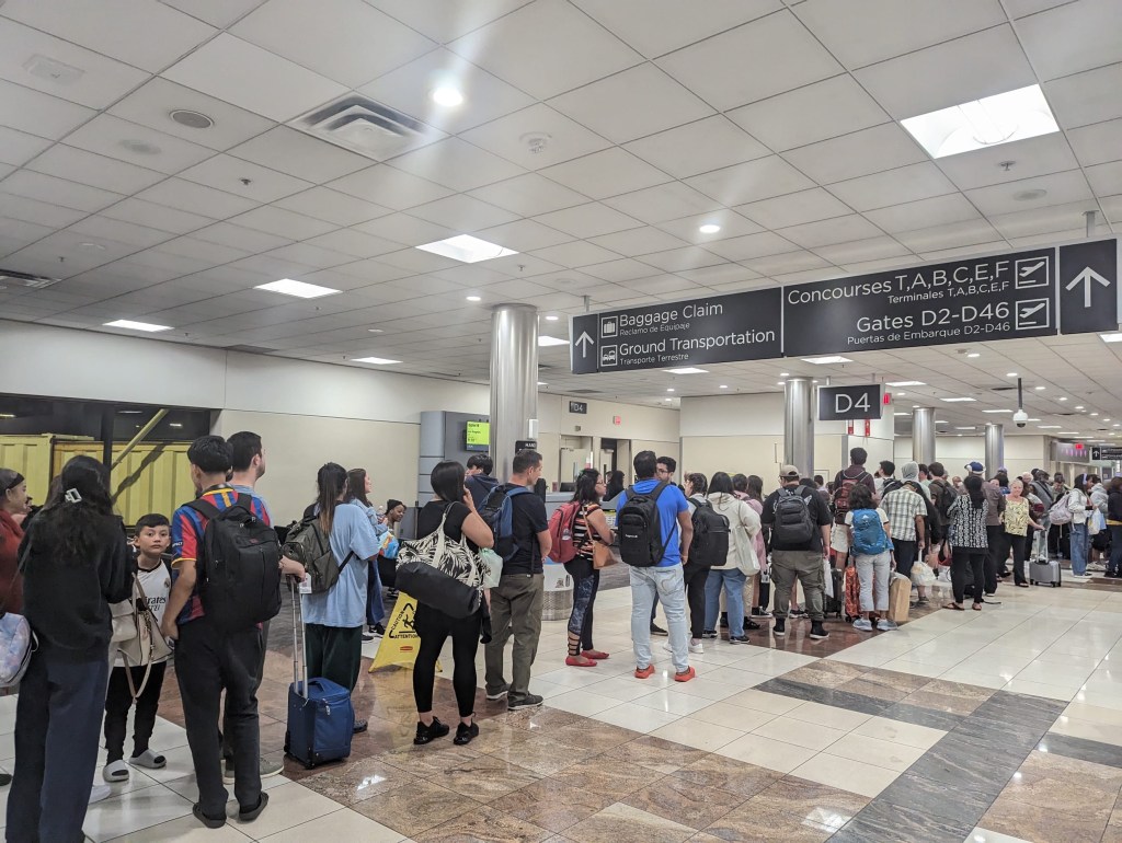Then we pulled off to the side again to kill a few minutes before throwing ourselves into the customs and security lines. There was a young woman in line near us who was freaking out about missing her flight that wasn’t departing for another hour. Nicole and I seem to encounter these types of people quite frequently and then find that they’re actually on our flight. In this case, she was going to JFK, but we do seem to observe quite a large disconnect between what we and other people view as a “tight connection.”