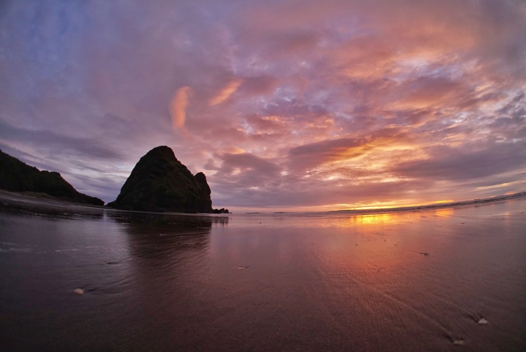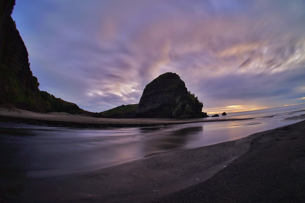 We then relaxed for a spell while heavy rain returned to the area and we watched the second half of the Canada – Nigeria game taking place in Australia. It was sunny there evidently. As the sun went down on the horizon, it looked like some of the clouds might even be clearing just a little bit. Greg and I ventured back down to Piha to watch some semblance of a sunset.