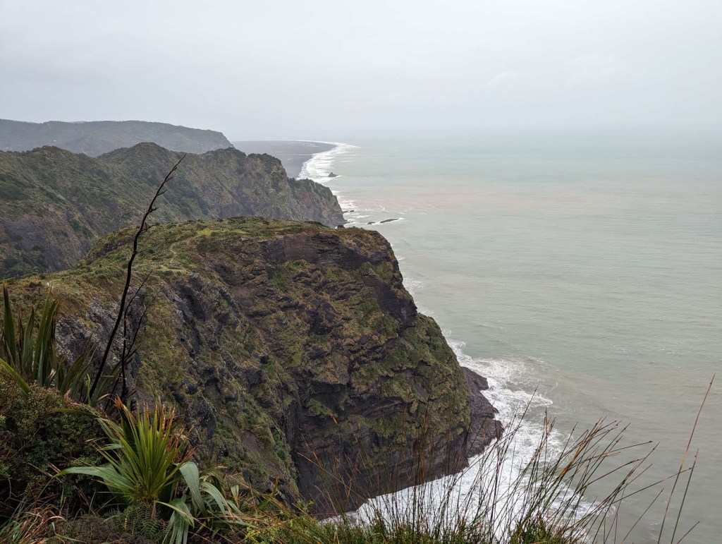 Despite being thoroughly soaked, it was nice to get out and be able to see some scenery. Earlier in the day, the rain was so intense that we weren’t even able to see the hills in the distance. After returning to the shelter of the car, we decided to drive into the town of Piha. It is a coastal surfing town that has few buildings, but it did have some nice scenery. We stopped at a beach and explored the area on foot in what had now become just a light drizzle.