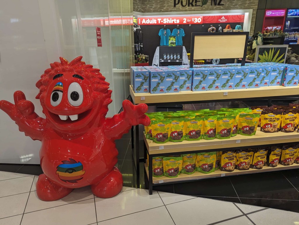 As we were quite a bit early, we took our time in some shops and stocked up on some more Whittaker’s Chocolate and some World Cup items. And lastly, we bid adieu to the Chief Cookie Muncher himself, hawking his Cookie Time wares like only a monster drunk on cookies and meth can do. Cookie Time is a local New Zealand snack that is simply a prepackaged cookie. They are about as good as you would expect. Nevertheless, the packaging states that they are for serious cookie munchers only — something I identify with.