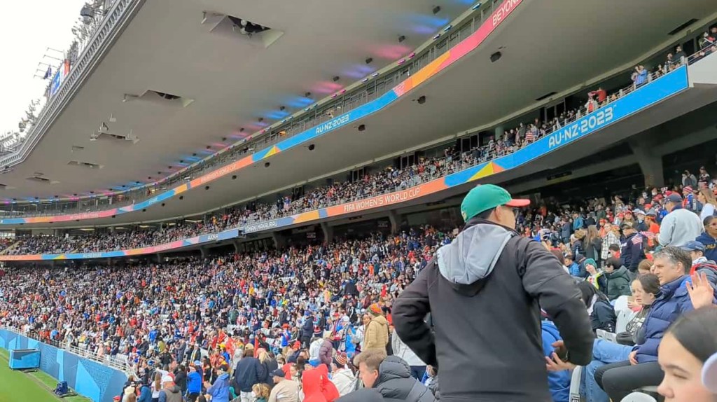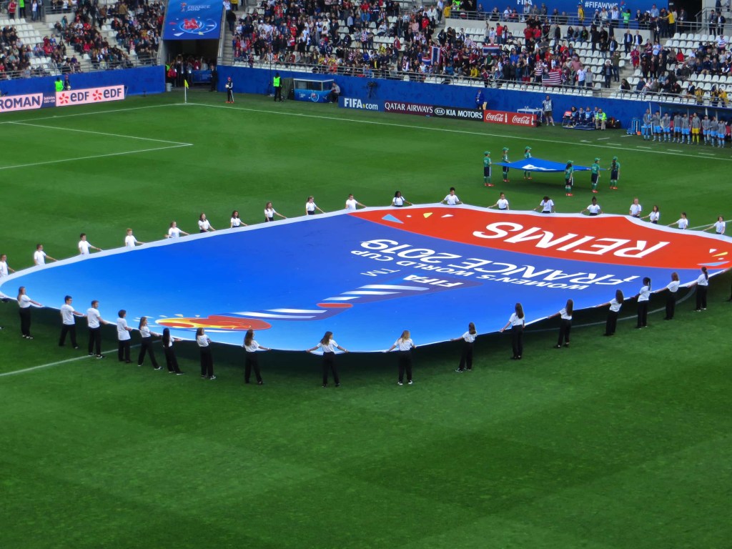 Three of the four voyagers on this trip had gone to the previous World Cup in France and are able to compare the differences. While the stadium in Reims was crowded, it was not filled to capacity. There was very little publicity, and virtually no merchandising outside the stadium itself. One might easily have not known that there was a World Cup going on. There are a few reasons for this. FIFA has never put nearly as much money into the women’s World Cup as the men’s. The hosts, France, were kicking off a busy summer of travel, and perhaps not that focused on some mere “side event” in their eyes. But most importantly, I don’t recall ever seeing an advertisement for the event in the United States or abroad. If one were watching a sports network, they might have seen an ad on that station, but outside of that — nothing.