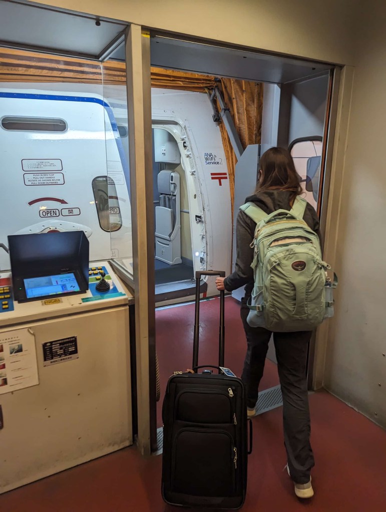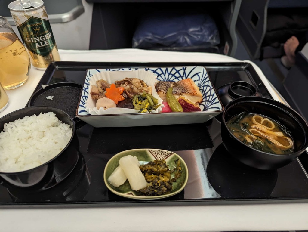 We eventually made our way to the ANA 787 and took our seats in 2E and 2G. It was a much nicer seat and much better service than the last flight. We were bowed to repeatedly and given a menu for dinner that seemed to be eight courses. It was almost too much. I was eager to roll out the bedding and lie flat to get some rest. I eventually was able to do this and fell asleep despite the man behind me waking me up repeatedly with a gross hacking cough. An announcement woke me up about an hour before landing.