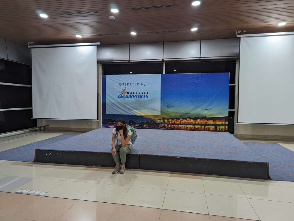 I went for one last stroll along the waterfront and saw one of the final races of the regatta from the bridge spanning the river. Nicole was able to negotiate a late checkout of 6pm, which seemed reasonable enough. We had dinner at the Hilton after checking out. I had some sort of Indian-style curry/biryani thing. Nicole had a margherita pizza. Then we took what could be our last Grab of the trip as we headed off to the airport. Check-in was easy enough, but we soon discovered that the airport design is very much lacking.
