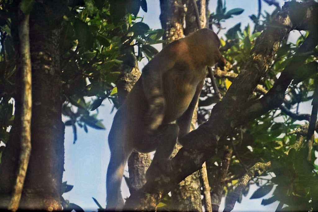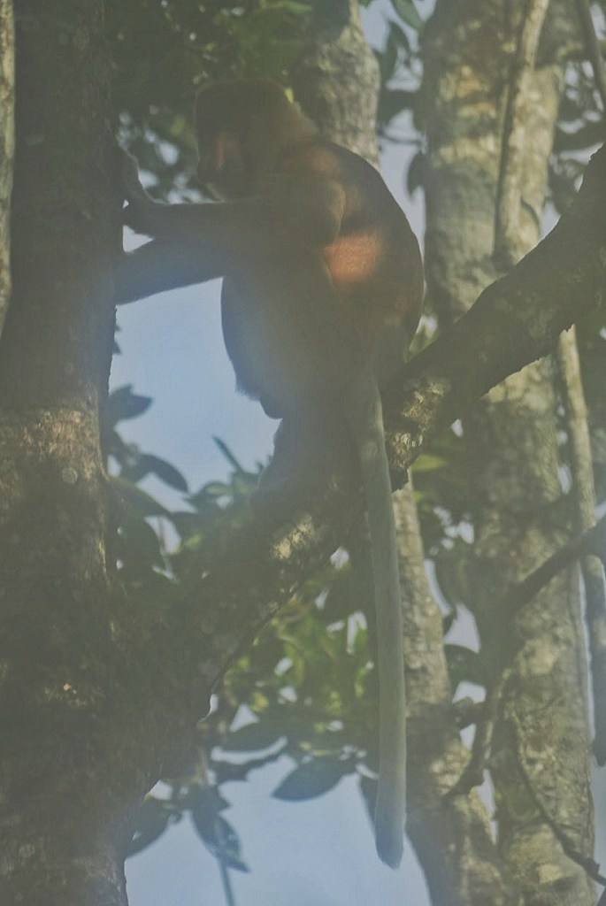 One thing we did not anticipate was the level of humidity seeping into our telephoto zoom lenses. It fogged up the outer glass which is not unusual nor unexpected, but after clearing away that condensation, we both discovered that the humidity had somehow gotten inside our lenses and was making them appear cloudy. So unfortunately, when we first spotted some proboscis monkeys with especially long schnozes, our cameras were virtually unusable. Once we get back home and can load the actual RAW files onto a computer, we may be able to salvage something, but it’s not ideal.