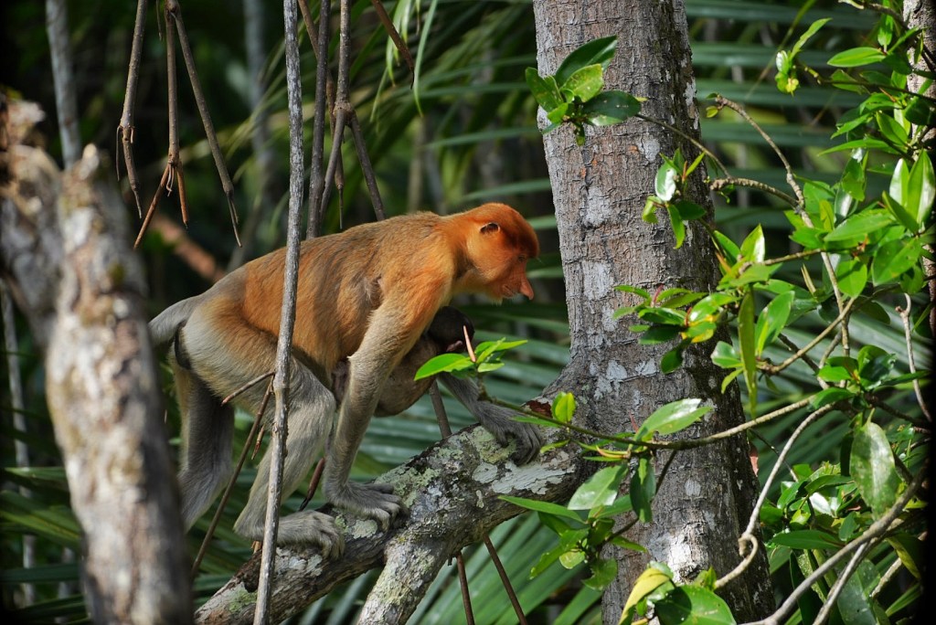 Luckily, our lenses did eventually acclimate, but the best sightings of the day were already behind us. The male proboscis monkeys have the larger schnozes to attract a mate. This, in fact, is how I initially attracted Nicole as well. My nose is in a business all for itself. But as far as the male proboscis monkey is concerned, they are a bit cagier and don’t like to see humans nearby and will often retreat. The females with smaller noses aren’t as jumpy as their male counterparts, so we saw more females on our way back down the river.