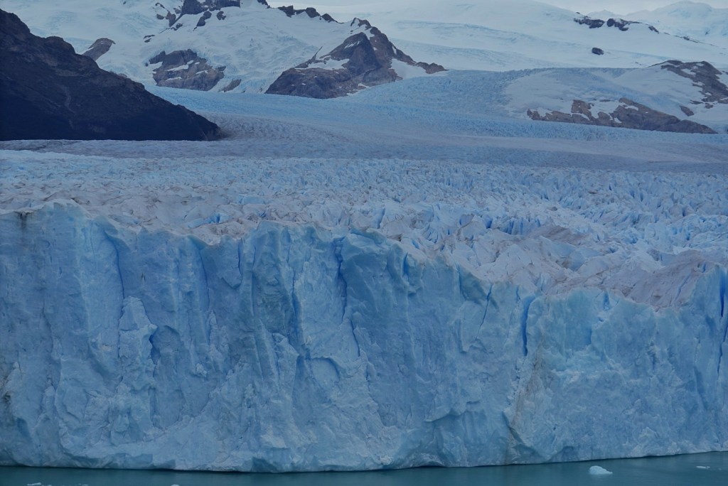 Perito Moreno is a sizable chunk of ice at over 30 km long. But what makes it particularly unique in these times is that it is the only glacier that actually adds mass. In these times of climate change, glaciologists are stumped by it. With that being said, we could still hear ruptures and calving occurring. It is after all, the peak of summer, but at its worst, it replaces any ice lost to maintain the status quo.