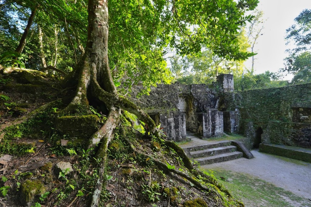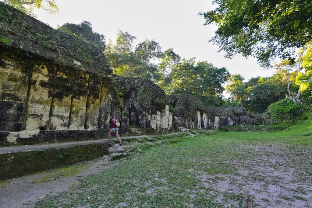We got our giant tickets processed and were wrist-banded before walking back into the park. We took a different route in to view the few temples that we hadn’t yet seen. Nobody appeared to be at the park yet. Strangely, one group was near the entrance with us, but they went to the visitor’s center first, which seemed like an odd choice. We walked by Templo VI, the furthest from the city center and home to los introvertidos. On the way, we kept hearing very deep groans in between squawking birds. The jungle was alive. I felt like I was in Jurassic Park. The deep groans were possibly howler monkeys, but having not seen them, I cannot confirm that they weren’t a triceratops. The Group G ruins were nearby, which we also explored. These were residences that had windows and built-in beds made of stone. Presumably the Mayans also crafted some kind of mattresses otherwise it would have been literally like sleeping on a rock.