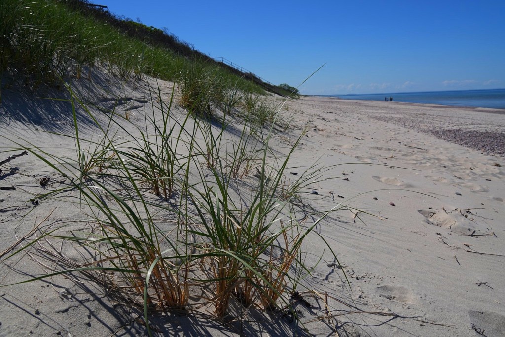Once on the other side, we began driving south. We didn’t stop until we reached Pervalka, a beach facing the Baltic with grassy headlands forming the backdrop. There were a few people lounging in the sun and having a beach day. It was maybe in the 60s at that point . . .maybe. But for Lithuania, I imagine that’s a pretty solid weather day. To be fair, with the sun out and very little wind, it was a very pleasant temperature.