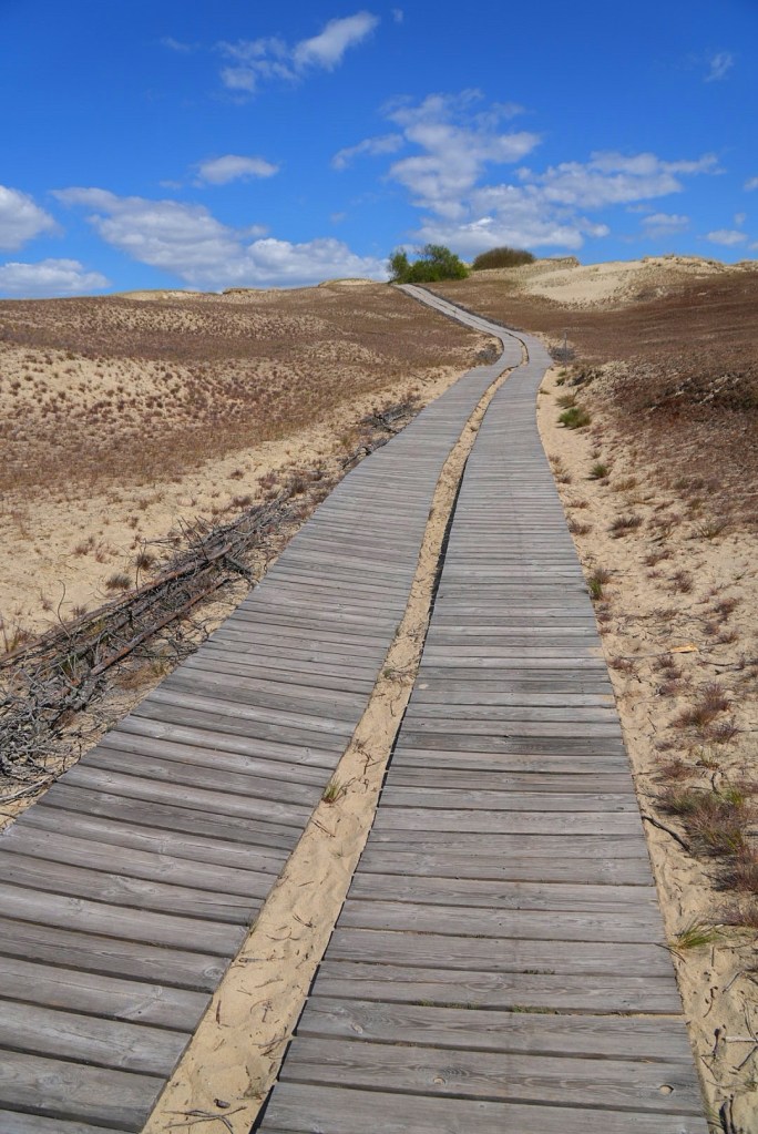 After lunch, we drove back north until reaching the Dead Dunes, which was a sort of protected area like a national park. A boardwalk path helped us traverse the first large dune, but eventually that ended and we trudged through the sand. The dunes were previously a very fluid thing until more forests were planted and headlands prevented the dunes from being as free range as they had been in the past. In fact, a sign told us that entire villages and cemeteries were consumed by the dunes up until the mid 19th century. Some more recent signposts were erected on the dunes to commemorate the lost villages and people long ago buried beneath the sands.