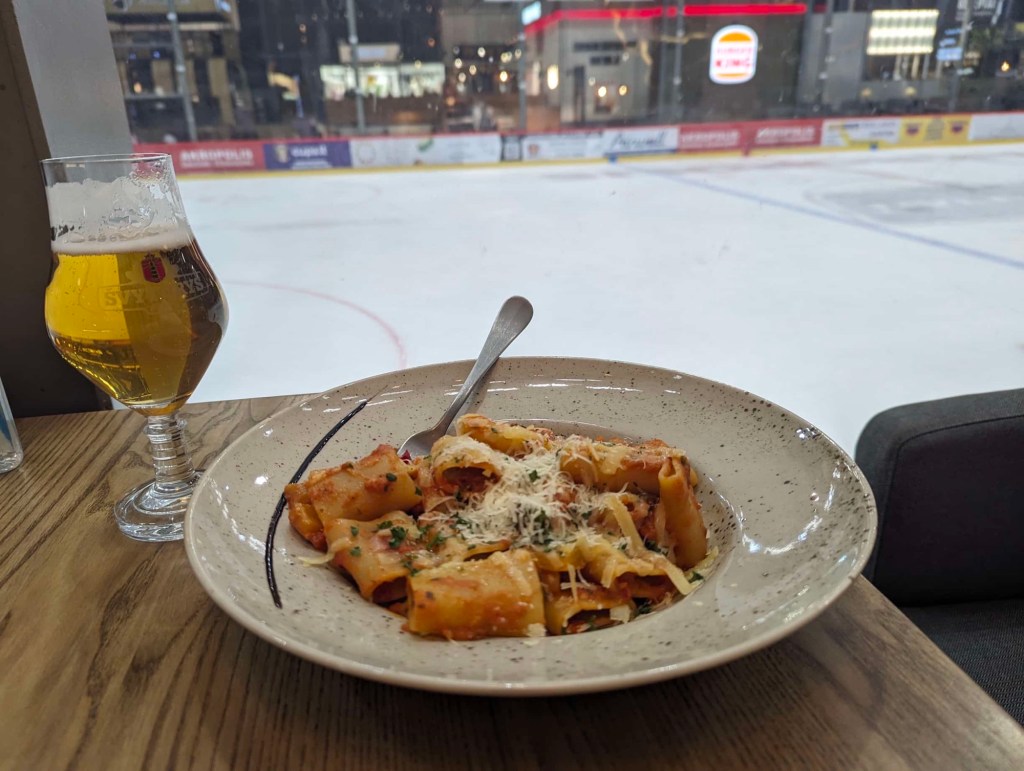 For dinner, we went to Casa Della Pasta, which is inside a shopping mall and has windows facing an ice skating rink. The food in Lithuania seems to be a bit greasy, fatty, and heavy, so ordering from a more predictable Italian menu was a welcome change. Nicole had her first margherita pizza of the trip, but it probably won’t be the last. Tomorrow we have a good amount of driving to do before ultimately ending up in Vilnius for the night.