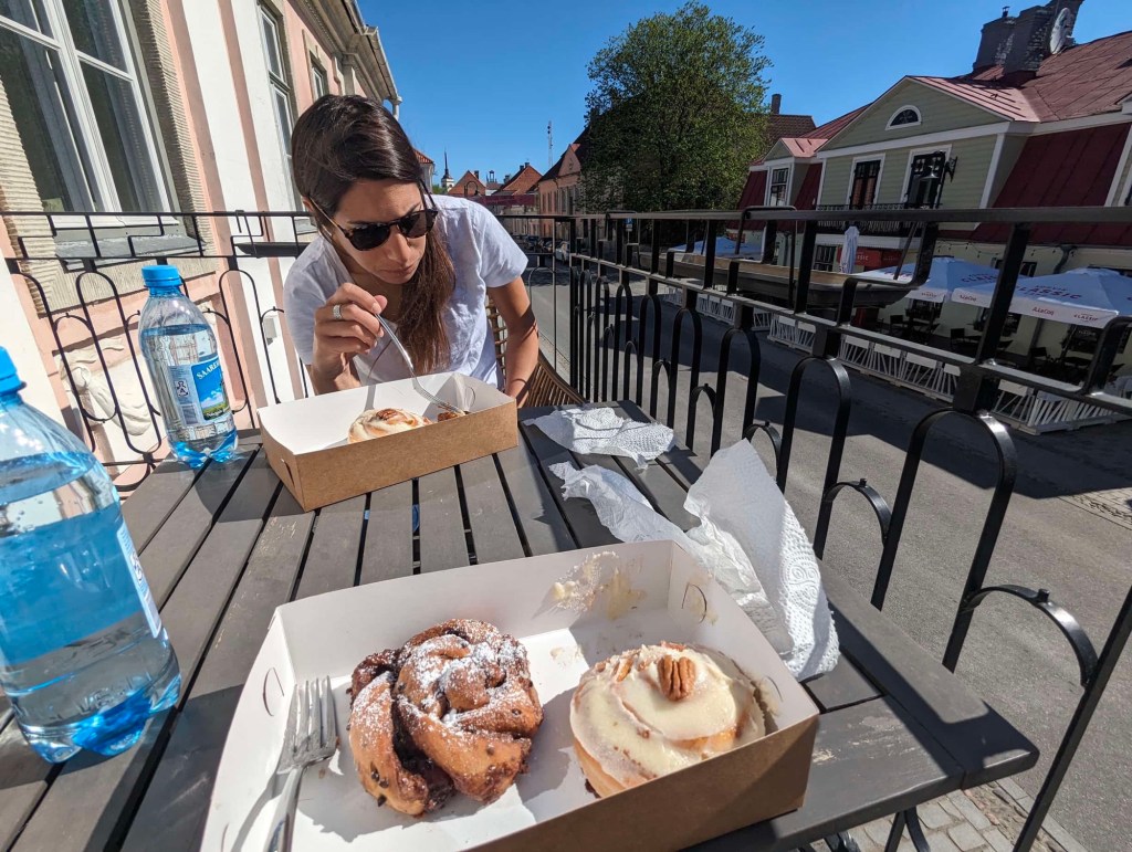 Morning came fast and we got ourselves some fancy pastries and rolls at a place called Bôns Pagaristuudio. They were fresh and delicious. One of mine had Nutella in it. We naturally ate them outside on our balcony to show off to any passersby.