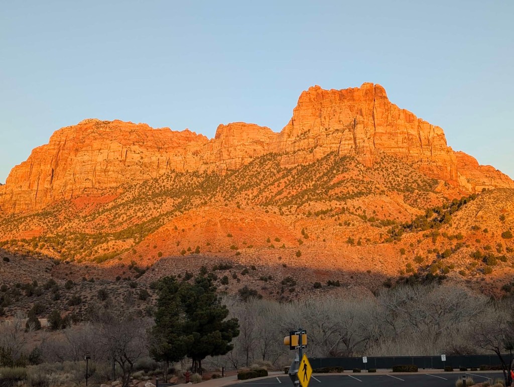 Because of Nicole’s still-existent Hilton honors Diamond status, we were upgraded to a suite. It is a multi-room affair with very large bathroom and expansive balcony overlooking the surrounding scenery. After settling in, we went to the Zion Canyon Brew Pub for an okay dinner outside under heat lamps. While we ate, we were notified by email of having been awarded two passes to “the wave.” How about that? As a result, we have to get up early tomorrow to drive to Kanab to pick up our passes in person (even though I confirmed everything online). It seems somewhat inefficient, but them’s the rules
