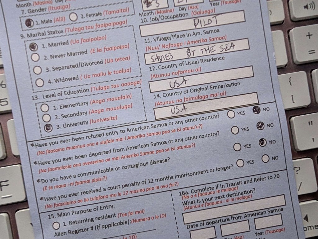 It has been a hell of a day, and combined many of the worst aspects of travel — the ones that the travel influencers conveniently leave out of their viral videos and selfie shots. This part of American Samoa is really not heavily touristed (as evidenced by just the two motels). It’s really just a jumping off point to go elsewhere. Since we are here all day tomorrow, I suspect I will have plenty of time to explain in my blog the differences between the two Samoas and why there are two and so on. Until then, just spare a thought for poor Nicole and the insignificance of her Hilton Honors Diamond status.
