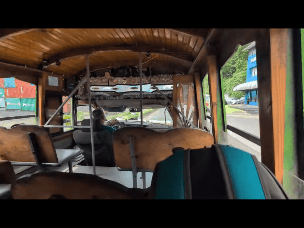 The weather was quite stifling and the heat was slowing us down a bit, so we decided to try our luck with a local taxi rather than the 25 minute walk back toward Sadie’s. American Samoa also has normal-ish taxis that operate like one would expect, but they also have these old converted bus things that carry multiple people at a time. I would call it a chicken bus, but apparently that terminology only refers to such modes of transit in Guatemala or parts of Central America. Either way, we tracked one down, climbed on board, and for a very modest sum of $1 were deposited back by our hotel in no time. We had lunch at the Goat Island café, which is part of Sadie’s and evidently one of the best restaurants on the island. I had Katsu chicken and a local-ish beer (it was from the other Samoa).
