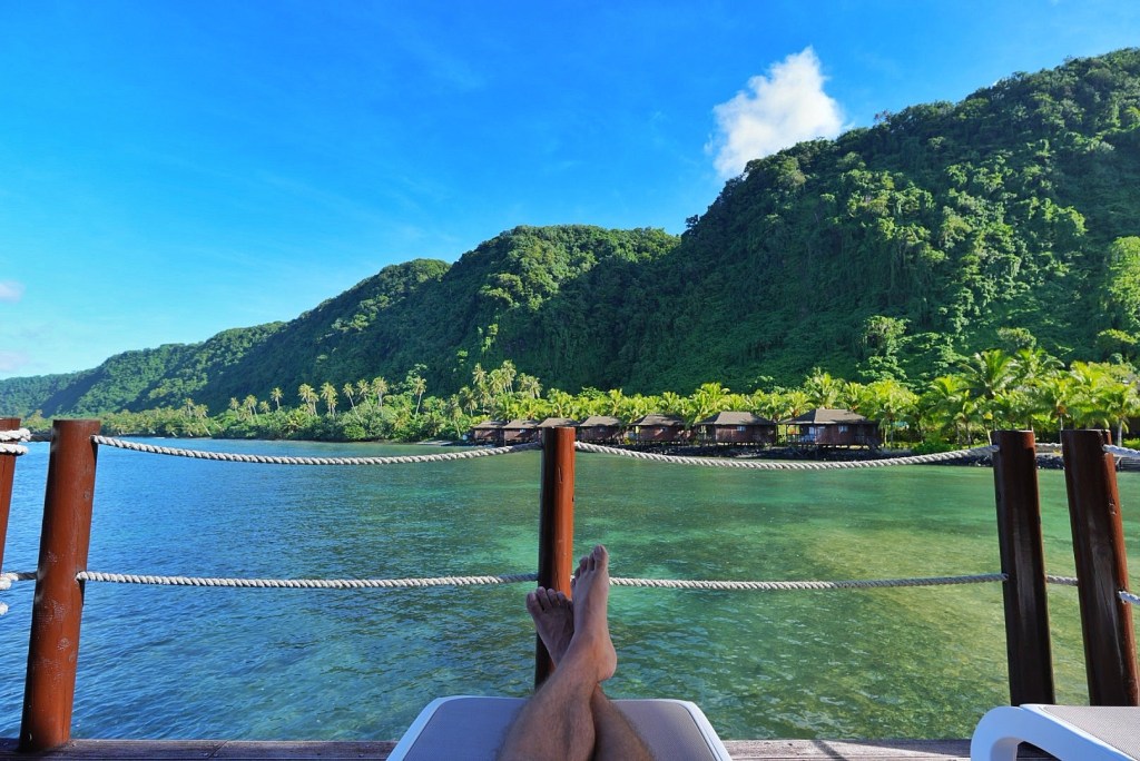 Sunset also delivered some nice colors. We went down to dinner, where Nicole ordered a different pasta with supposedly a different sauce. It too tasted like curry. Poor Nicole. She hasn’t even had the option to order a pizza since she doubled up at CPK in Kapolei, Hawai’i. Tomorrow we head back to American Samoa, but will have the whole morning to relax before driving nearly two hours back to the airport. As of yet, I haven’t received any emails about delayed flights, so I suppose that’s good. Or perhaps they’ll just let us know of the delay once we get there. We shall see.