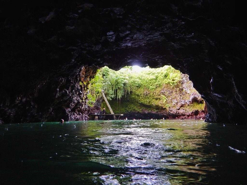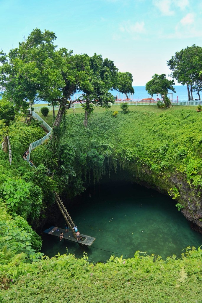 It cost a few tala to enter, and is essentially a big swimming hole — which I think is what To Sua means in Samoan. First we observed from afar, watching other whites timidly descend the 30m ladder down to the wooden platform. After walking around other areas of the park, I decided I’d go down and see what all the fuss was about. I timed my entry well and didn’t have to awkwardly wait for another white to go down or up. Once down there, I could see there was a sort of grotto or cave that appeared to connect to the ocean, but turned around before exploring too much.