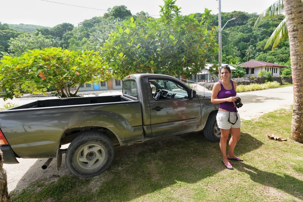 I nominated Nicole to be our driver. She maneuvered the Toyota pickup truck on Ofu’s often rugged roads with pinpoint precision as if she’s been driving trucks her whole life. You’d never know her primary mode of transport is a Volkswagen Beetle from 2002. First we drove over to the town of Ofu, where we were warned that the dogs can be quite aggressive. We didn’t see any dogs, and for that matter no people either. When your population is just 132, and there are more people eating at a Cheesecake Factory at any given time, I don’t suppose one can expect to encounter many signs of life. For that matter, though, imagine the culture shock of putting this island’s residents inside a Cheesecake Factory? The menu alone would send their minds into a tailspin.