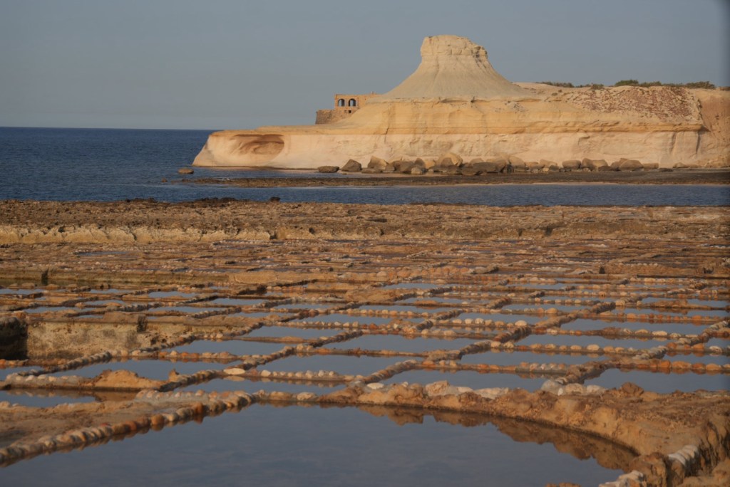 Ramla beach seemed close to the Xwejni Bay salt pans, though we still ended up taking 15 minutes to get to them. On the way, we ended up in that same stupid town where we did laundry and there are inexplicable one-way streets and construction and chaos. While attempting to make a sharp 170º blind right turn, I scraped part of the front tire, so that’ll be something to deal with later at Hertz. The salt pans are actually still used to extract salt and we saw a worker tending to it, whatever that entails. I thought it might be a good spot to check out later when the sun is going down.