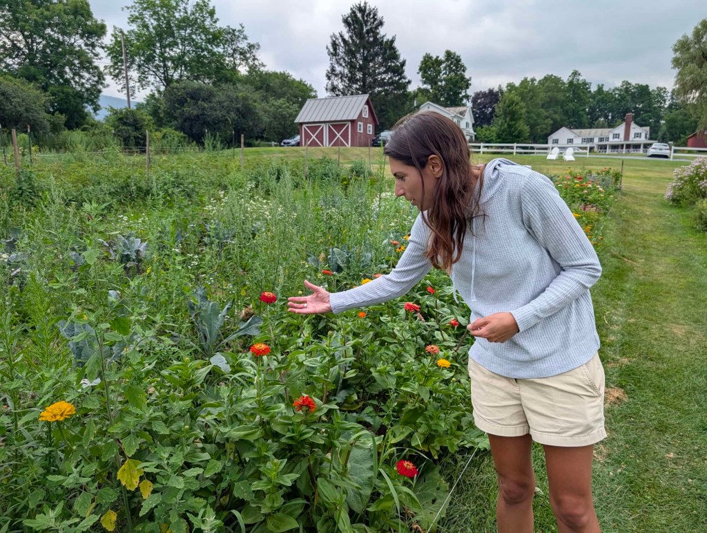 On our way out of town, we made a brief stop at Yaddo and its gardens. It is a famous retreat for artists and writers. Overcast skies threatened the whole morning, but we didn’t encounter any rain until we continued our drive on into Vermont. It took us about an hour to reach the Hill Farm outside of Manchester, Vermont. We are staying in a sort of farmhouse inn that is a working farm with numerous vegetables and apparently . . .alpacas.