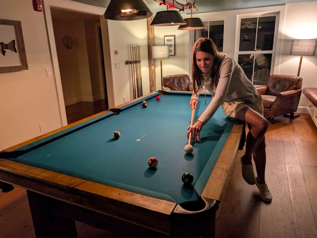 We then went to the main farmhouse to throw some darts and shoot some pool — neither game being played with its official rules. My very first dart toss was basically dead center, but it would deteriorate from there. Nevertheless, it needed to be documented to appear that I am totes good at darts. After a mildly competitive game of pool, we retired to our room where the power immediately went out. Last time this happened in Tunisia, men were frantically checking fuses, bringing us candles, and apologizing profusely. In this situation, there was no one here to do any of that because only eight people live in Vermont and there’s not a full time staff at the Hill Farm.