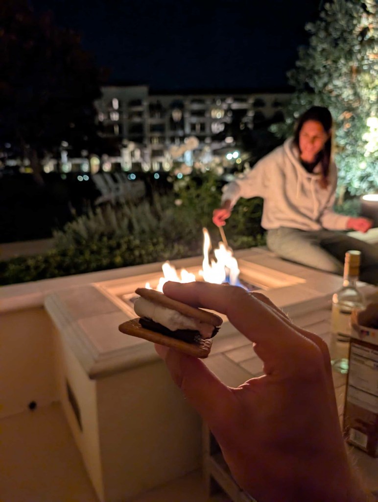 Eventually we were permitted to check into our room. Nicole, a Hilton Honors Gold member, was upgraded to a King fireside resort room — touted as having a fire pit, a s’mores kit, and bottle of wine. HOWEVER, since we had been upgraded into the room and hadn’t actually booked that particular room, these things were not deemed included (except the fire pit obviously because that is harder to remove).