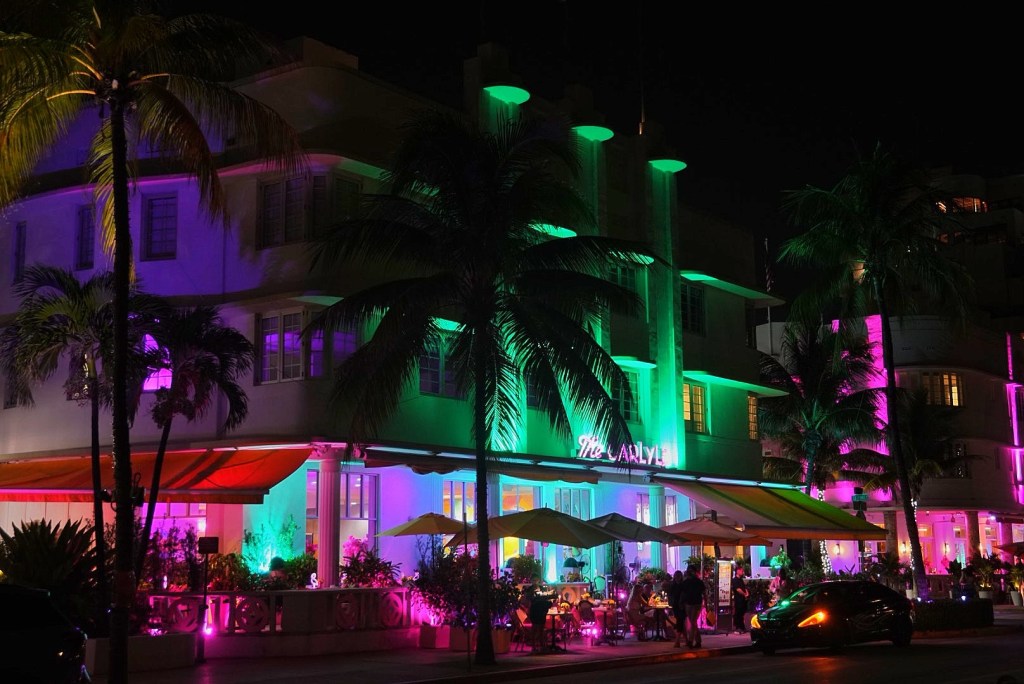 After dinner, we decided to head on down to South Beach. I managed to convince Nicole to get a Citi Bike with me to make the 3 mile journey down the coast. The air was pleasant and not too oppressive. The boardwalk was decently lit and despite the bikes being surprisingly firm and uncomfortable, we arrived in South Beach in about 10 minutes. We walked around Ocean Drive for a bit to check out the various art deco buildings lit up for the evening.