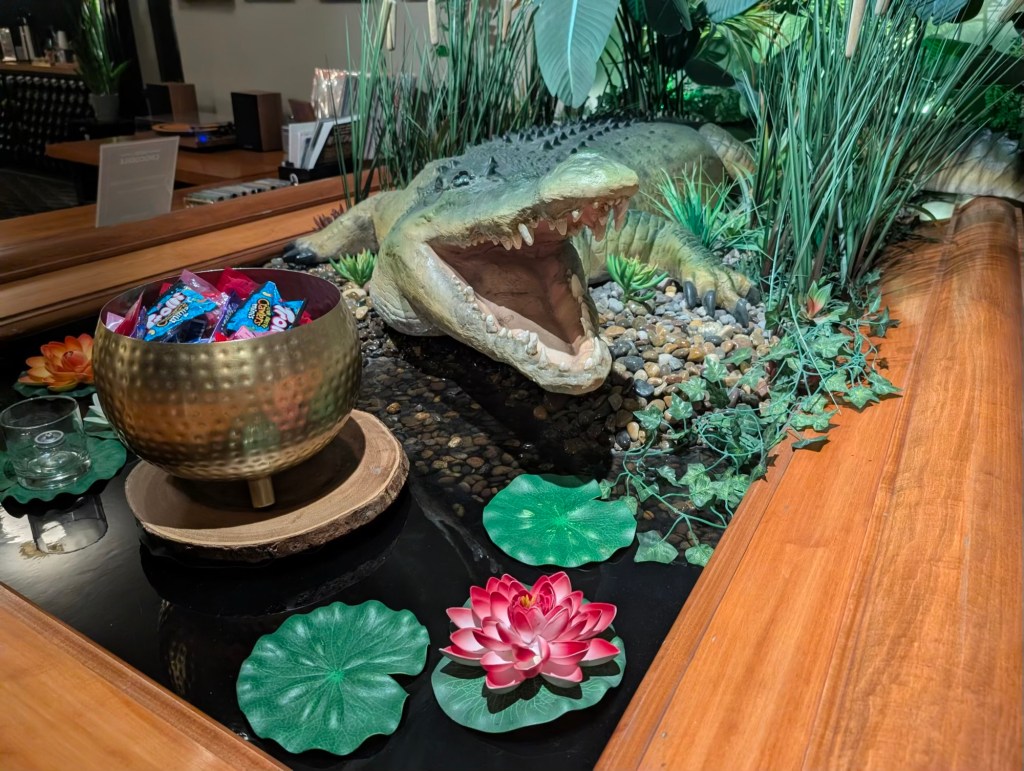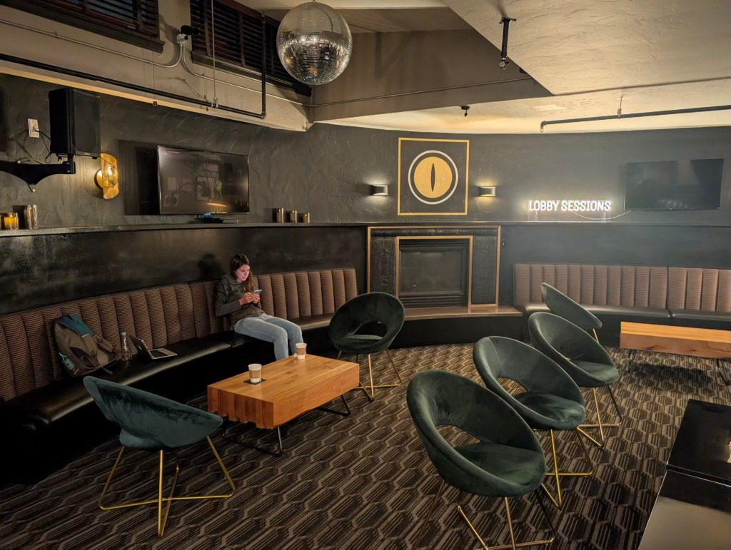 After taking the Link train to downtown Seattle, we walked for about 15 minutes until we got to the Hotel Crocodile. It is above a music venue and is a rather eclectic place to rest one’s head. Crocodile sculptures and art adorn the establishment. We had dinner nearby at an Italian restaurant before returning to the Croc to unwind while spinning some vinyl and fixing ourselves some tea.